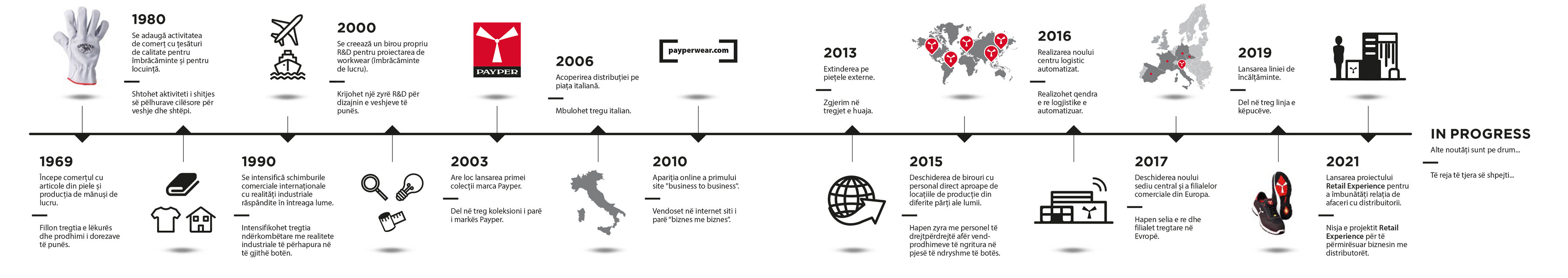 mișcările persoanei, a proteja și echipa cu piese vestimentare cu o estetică deosebit de îngrijită, tipică stilului italian. Creșterea ca mărime și specializarea dezvoltată de-a lungul timpului duc, în 2003, la nașterea Industrial Wear, având ca obiectiv industrializarea experiențele anterioare, extinderea catalogului de produse, îmbunătățirea serviciilor și câștigarea a noi cote de piață. În 2006, după ce a realizat distribuția pe întregul teritoriul italian, societatea a dezvoltat exporturile, ajungând în câțiva ani să acopere toate piețe europene importante. Astăzi dispune de un catalog de peste două mii de articole, calificate de brevete și numeroase certificări, la care se adaugă în fiecare an peste cincizeci de noi creații ale biroului italian R&D, mereu în căutarea unor noi soluții estetice și funcționale. Producțiile sunt gestionate și supuse unor controale de calitate amănunțite direct de la propriul personal din birourile tehnice aflate în diverse părți ale lumii. În anul 2017 a fost inaugurat noul sediu, un sediu central modern care produce energie regenerabilă, dotat cu un showroom de 800 m² în care se poate vizualiza întreaga colecție Payper și cu un depozit echipat cu sisteme logistice inteligente de ultimă generație.